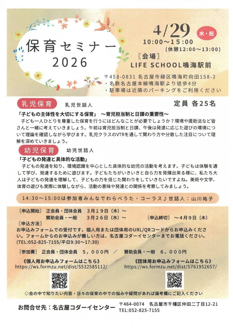 保育セミナー2026 開催のお知らせです。