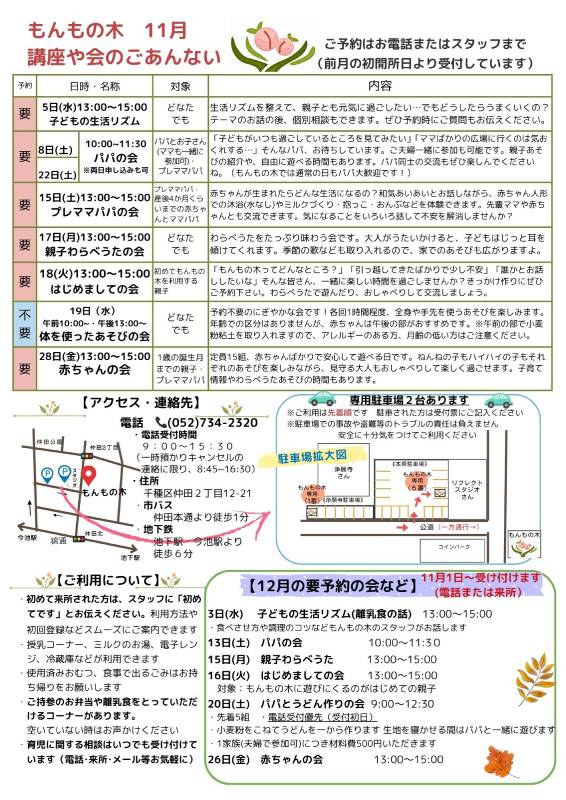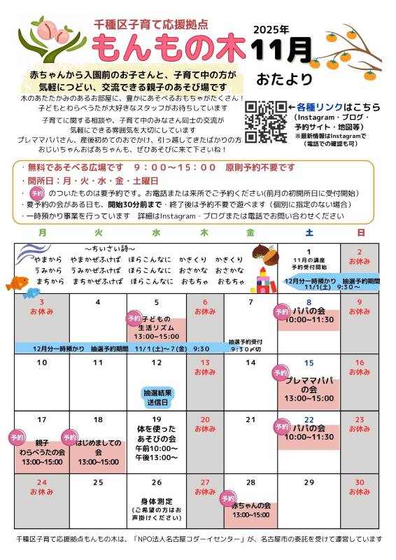 12月の各講座は、11月1日から受付が始まります。12月の一時預かりの抽選申し込みはエアリザーブで11月1日(土)9時30分から11月7日(金)9時30分まで受け付けます。